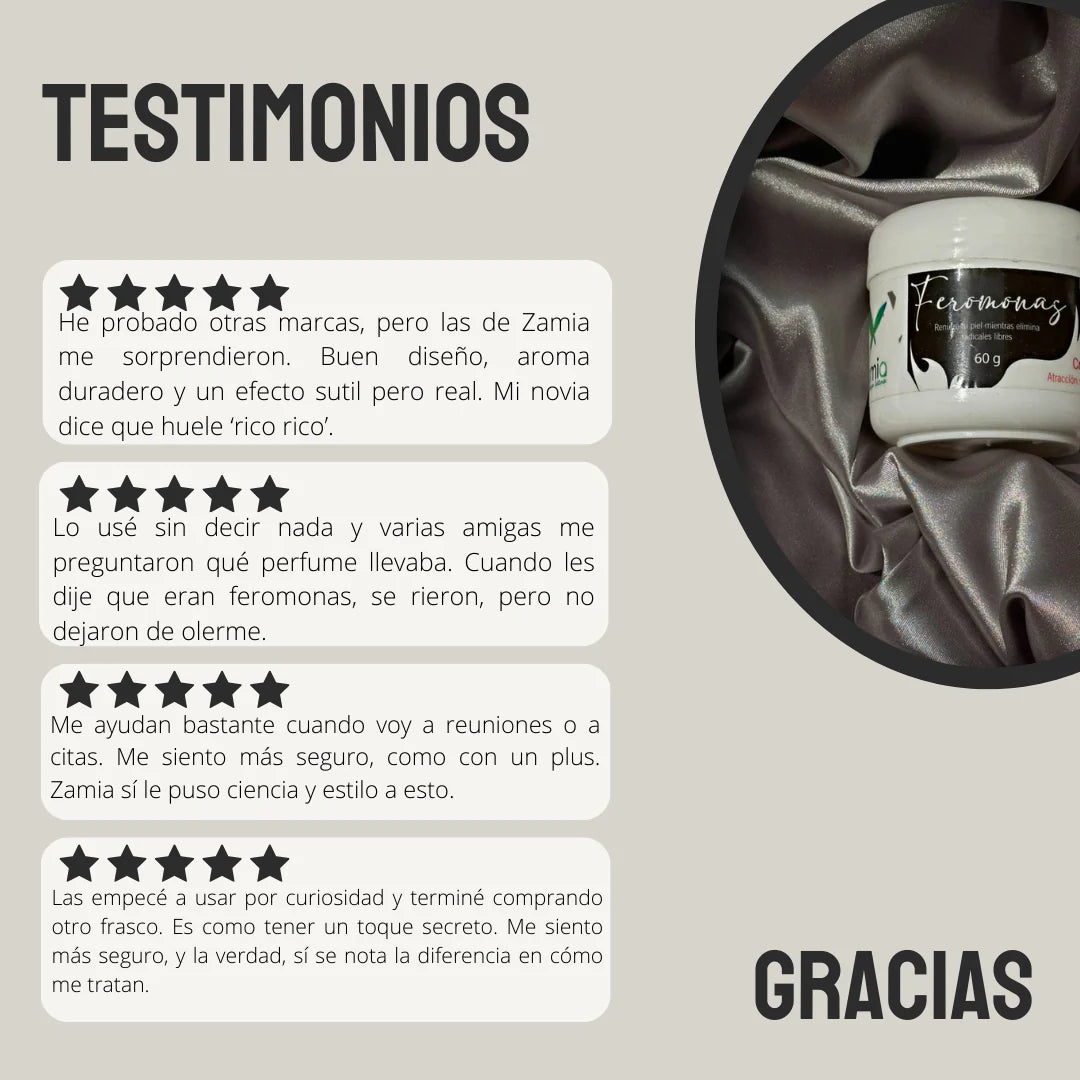¡Es hora de tomar el control de tu atractivo! Añade el Zamia Feromonas Masculinas a tu rutina y observa cómo tu confianza y tu conexión con los demás se transforman. 🔥